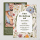 Convites Código QR Foto Boho Wildflower Casamento Botânico