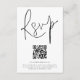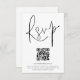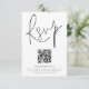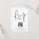 Código QR moderno Script de Casamento Preto e Branco ou Qualquer RSVP de Cor. Um gabinete de opções conveniente para pedir aos seus convidados que digitalizem o seu código QR para o seu site de casamento para RSVP. Uma tipografia de na moda set em preto para o título principal RSVP complementando o resto do texto que você pode personalizar facilmente. Seu código QR será gerado automaticamente para atualizar o código de amostra no design, quando você simplesmente alterar o URL de amostra no modelo com o URL do seu próprio site de casamento.