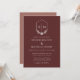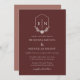 Monograma Botânico Convite para Casamento Burgundy. A frente tem um belo monograma floral e verde com uma formulação formal de convite