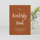A elegante tenda, escrita à mão, escreve nomes de noiva e guião noivo, tudo informal em um convite de casamento com digitalização de código QR para o site em simples cor branca e crosta queimada de laranja solar. ++++++++++++++++++++++ Você pode alterar as cores do texto e do plano de fundo após selecionar a opção PERSONALIZAR mais. ++++++++ O convite é adequado para cerimônias e recepções de casamento informais de estilo moderno.