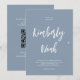 A tenda elegante escreveu nomes de noiva e guião nobre, tudo informal em um convite de casamento com a digitalização do código QR para o site em branco simples e azul empoeirado. ++++++++++++++++++++++ Você pode alterar as cores do texto e do plano de fundo após selecionar a opção PERSONALIZAR mais. ++++++++ O convite é adequado para cerimônias e recepções de casamento informais de estilo moderno.