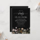 Celebre em estilo com este Bebê de Flor Selvagem com Código QR Preto no Convite para Chás de Sangue. Apresentando ilustrações elegantes de flor silvestre contra fundo preto-chico, esta design combina sofisticação moderna com encanto rústico. O código QR integrado facilita as respostas de RSVP, garantindo uma experiência perfeita para os convidados. Perfeito para um chá de fraldas moderado, minimalista e inspirado na natureza.