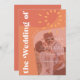 O abstrato dá forma ao estilo vintage 70s com código QR exclusivo RSVP on-line em um convite de casamento de fotos sunburst de orçamento com "o casamento de" tipografia ousada em uma vibrante tenda cor laranja moderna de ferrugem e terracotta. ++++++ Observe que todas as cores podem ser alteradas. ++++++++++++ O convite é adequado para o na moda casual de verão ou outono de casamentos contemporâneos.