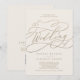Este código romântico de ouro e marfim qr, tudo em um convite de casamento é perfeito para um casamento simples. O clássico moderno design apresenta espirais de rico e turbilhões brancos com belíssima e elegante tipografia de folha de ouro de champanhe com letra falsa. Salve o papel, incluindo um código QR para seu convidado para ver detalhes, RSVP ou ambos. Nota: Este design não apresenta folha de ouro real. É um gráfico de alta qualidade feito para se parecer com folhas de ouro.