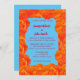 Impresso com design floral laranja bonito em fundo azul personalizado e código QR para URL do site, os cartões de convite são excelentes para casamentos outono ou casamentos de jardim. Todos os textos são personalizáveis, podem ser editados e personalizados como quiser!