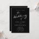 Tudo em um código QR RSVP Chic Modern White Calliografia Script Black Wedding Convite... Nosso convite de casamento preto e branco, minimalista, apresenta um roteiro de caligrafia moderno combinado com texto serif e sans serif para um convite de casamento simples e chic. A parte traseira do convite também exibe o código QR do seu site de casamento, assim como o próprio URL do site, permitindo que seus convidados RSVP online sejam facilmente visualizados e todos os detalhes normalmente enviados em um pacote de casamento. O exemplo de modelo de gráfico de código QR e todo texto de exemplo (além dos elementos de caligrafia gráfica) podem ser facilmente revisados com suas próprias informações sobre o modelo de personalização.