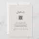 Tudo em um Código QR RSVP Trendy Black Calliografia sobre o Convite Elegante de Casamento Eggshell... Nossa trendy minimalista "frente e trás" preto no elegante convite de casamento do conde-ovos apresenta um roteiro de caligrafia moderno combinado com o texto do serif e do sans serif para um convite de casamento simples e chic. A parte traseira do convite também exibe o código QR do seu site de casamento, assim como o próprio URL do site, permitindo que seus convidados RSVP online sejam facilmente visualizados e todos os detalhes normalmente enviados em um pacote de casamento. Este convite de casamento ao estilo moderno foi concebido para ser simultaneamente respeitador da moda e do orçamento... bem como para poupar tempo. O exemplo de gráfico de código QR e todo texto de exemplo (além dos elementos de caligrafia gráfica) pode ser facilmente revisado com suas próprias informações sobre o modelo de personalização. Você pode gerar um gráfico de código QR sozinho digitando apenas o URL do seu site de casamento... seu código substituirá automaticamente o código de exemplo atualmente em vigor. Esta versão do convite exibe o script de caligrafia para a palavra "Detalhes" acima do código QR