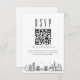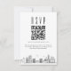 Um cartão de código de QR rsvp de casamento com uma lindíssima linha estilizada representando a cidade do Brooklyn. Substitua o código QR por um que apresente um link para o seu site para ajudar a facilitar a resposta ao evento de seu casamento para seus futuros convidados.