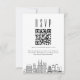 Um cartão de código de QR rsvp de casamento com uma bela linha estilizada representando a cidade de Nashville. Substitua o código QR por um que apresente um link para o seu site para ajudar a facilitar a resposta ao evento de seu casamento para seus futuros convidados.