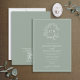Convites Código QR Sage Green Leafy Crest Monograma Casamen
