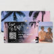 Destino Casamento na Praia Passagem Aérea Bilhete Dourado Salve o Dia com ícone de coração e avião com arte de linha minimalista simples mapa-múndi e fundo da praiaAdd seu Código QR