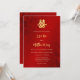 Este elegante convite para o casamento chinês mostra um símbolo de dupla felicidade de ouro artístico em um fundo floral vermelho de shimmering. Nomes de noiva e noivo em um elegante roteiro escrito à mão. Convite para casamento chinês ou convite para cerimônia de chá. Com um código qr digitalizável na parte de trás.