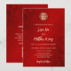 Este convite tradicional para o casamento chinês apresenta um símbolo de felicidade dupla dourada num fundo floral vermelho de shimmering vermelho. O elegante guião manuscrito dá ao design um toque moderno. Você pode facilmente mudar a linha, que diz: "convide você para a cerimônia de casamento" para "cerimônia de chá". O convite tem um código qr digitalizável na parte de trás do seu site de casamento.