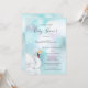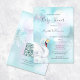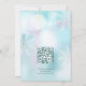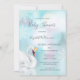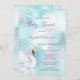Princesa elegante do cisne num lago de turquesa com reflexo do cisne na água. Elegante convite para chá de fraldas de inverno com grandes flocos de neve. Com um código qr digitalizável na parte de trás para o registro de presentes do convidado de honra.