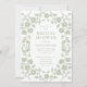 Convites Código QR Verde Sage Chá de panela Floral Branco F