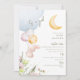 Coelhinho bonito é um convite para Chás de fraldas. É uma garota! Lua. Flores. Retangular. Doce.