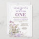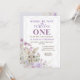 Convite de Aniversário de 1 ano do Coelhinho da Onda de Flores Silvestres Roxas