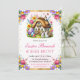 Este convite caprichoso para o Dia de Páscoa apresenta uma casa encantadora cercada por ovos de Páscoa coloridos, coelhinhos brincalhões e um buquê de flores de primavera. As cores vibrantes e as borboletas delicadas, combinadas com a mensagem "Brunch de Páscoa e Caça aos Ovos", estabelecem o tom perfeito para uma celebração alegre de primavera. Ideal para convidar amigos e familiares para o seu brunch de Páscoa e caça aos ovos, este design captura a essência da Páscoa de uma maneira divertida e festiva.