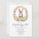 Tornar a Páscoa inesquecível com nosso convite para Caça de Ovos de Páscoa. A design apresenta lindas flores aquáticas, ovos coloridos e um coelho bonito, fazer na moda e charmoso. Use as ferramentas de design para personalizar o texto. Também disponível como download digital.