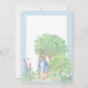 Coelho azul doce no jardim com verde e flores feitas em aquarelas moles. Uma xadrez azul e branca com marcas verdes de destaque. Design é transportado para o fundo deste adorável convite. Perfeito para chá de fraldas de menino ou menina. chá de fraldas temático "Um belo coelho". Perfeito para o seu evento.