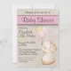 Convide todos a comemorar a nova mãe a estar num chá de fraldas com este belo convite design com um coelho vintage com balões num fundo bege neutro. Acentos cor-de-rosa e amarelo.