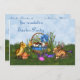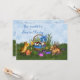 O coelho da Páscoa sentado no prado perto de um cheio de ovos de chocolate Páscoa e uma galinha fofa. Clique em Personalizar para personalizar o produto presente!