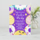 Celebre a Páscoa com este convite de festa divertido que apresenta donuts decorados com cores pastéis, um coelho e um pintinho alegres, e um fundo roxo festivo salpicado de estrelas. O layout circular e a paleta de cores suaves de primavera criam um clima alegre e acolhedor perfeito para reuniões sazonais. Ideal para festas de Páscoa, aniversários de primavera ou celebrações temáticas, este design combina o capricho açucarado com o charme do feriado.