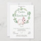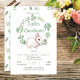 Coelho de Páscoa tão doce com um aro floral verde salgueiro em um fundo branco com a legenda "Brunch de Páscoa" em verde salgueiro. A parte de trás apresenta um padrão de folhas coordenadas. Ótimo para celebrações de Páscoa. Design original de Holiday Hearts Designs (direitos reservados).