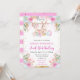 Este convite de aniversário de Páscoa doce apresenta um coelho de aquarela suave cercado por ovos de Páscoa pastel, flores delicadas e bandeirolas de primavera caprichosas. Tons rosados, acentos menta e detalhes dourados suaves criam uma atmosfera leve e alegre de primavera com um charme feminino de livro de histórias. A moldura floral arejada e o estilo pintado à mão tornam este design perfeito para aniversários com tema de Páscoa, celebrações de primavera e festas de segundo aniversário com uma estética suave e elegante.