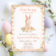 Este convite de aniversário em aquarela fofo e caprichoso apresenta um adorável coelho, flores secas com arranjos florais de grama de pampas e confetes dourados. O texto combina fontes manuscritas e sem serifa para um visual elegante e moderno. Isso é perfeito para uma festa de aniversário de primavera.