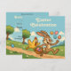 Esta ilustração divertida de Páscoa apresenta um coelho travesso correndo alegremente com uma cesta cheia de ovos de Páscoa coloridos, enquanto uma galinha surpresa o persegue! Situado em uma paisagem de primavera brilhante e alegre e desenhado em um estilo de desenho animado retrô, este design traz um sorriso para crianças e adultos. Um design humorístico e leve para uma celebração de Páscoa alegre!