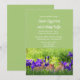 Personalize este convite de Páscoa com o seu texto. Escolha uma fonte e a cor do texto que complementem a sua festa de feriado. Este adorável convite de Páscoa apresenta um fundo verde de primavera com íris roxas e coelhos abaixo do texto.