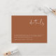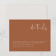 Este cartão de detalhes do casamento apresenta uma fonte manuscrita arrojada e um design minimalista moderno. Sua paleta de cores bege e laranja queimado boêmio o torna o complemento perfeito para o seu conjunto de convites de casamento limpos e contemporâneos. Você também pode usá-lo para listar acomodações ou detalhes sobre qualquer evento; chá de bebê, chá de lingerie, festa de aposentadoria, etc. Edite a *maioria* do texto para atender às suas necessidades.