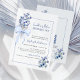 Traga elegância eterno para sua celebração com este chá de panela "Algo Azul". Projetado com florais azuis empoeirados de aquarela, um delicado sotaque de arco e fita, e um código QR para fácil acesso ao registro, este convite combina o encanto clássico com a conveniência moderna. Perfeito para festas de jardim, chás de chá ou eventos de casamento sofisticados.