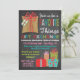 Coisas favoritas e bonitas da festa de Natal do Exchange Holiday. Apresenta presentes coloridos e um pacote de papel marrom embrulhado em cordas sobre um fundo de quadro preto. Ilustração desenhada à mão por McBooboos