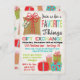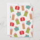 Coisas favoritas e bonitas da festa de Natal do Exchange Holiday. Possui presentes coloridos e um pacote de papel marrom embrulhado em cordas em um fundo de linho levemente esbranquiçado. Ilustração desenhada à mão por McBooboos