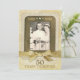 Este convite comemorativo de 50 anos tem um visual antigo de outrora. O design da frente apresenta uma moldura rodeada por uma imagem realista de renda e destacada com imagens de apliques de strass em tom dourado. Substitua a foto de amostra pela sua própria foto usando o modelo fácil fornecido. Abaixo da foto há uma imagem de um laço de fita falso dourado brilhante e tudo está configurado contra um fundo que simula pergaminho antigo e correspondência vintage. Personalize a frente com os anos de aniversário (como mostrado) ou os nomes do casal. Duas linhas de texto na parte inferior também são personalizáveis. O verso apresenta a mesma imagem de correspondência antiga. Substitua o texto de amostra pelos detalhes do seu evento usando os modelos fornecidos.