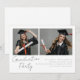 Este convite para festa de formatura de na moda apresenta duas fotos no topo, capturando momentos e memórias especiais. O design simples e limpo garante que as fotos fiquem no palco central, enquanto o restante da placa fornece espaço para os detalhes da sua festa. O layout moderno e minimalista mantém o foco na celebração, fazer que este cartão seja uma combinação perfeita de elegância e simplicidade para o seu evento de graduação.