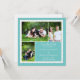 Este casamento salvar o cartão de data é perfeito para mostrar suas fotos favoritas. O quadro de estilo de colagem tem pontos para adicionar três fotos, uma com orientação horizontal ou horizontal e duas com orientação vertical ou retrato. A colagem é colocada sobre um fundo de cor azul lacrimejante ou turquesa. Não é louco pela cor de fundo? Selecione a opção para personalizar ainda mais e alterar a cor do plano de fundo para o tom preferido.