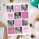 Convites de festas de aniversários de 80 contemporâneos com uma colagem de fotos moderna, quadrados cor-de-rosa bonitos e um modelo de texto na moda para você personalizar com suas próprias informações de celebração.