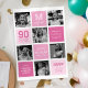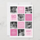 Convites de festas de aniversários de 90 contemporâneos com uma colagem de fotos moderna, quadrados cor-de-rosa bonitos e um modelo de texto na moda para você personalizar com suas próprias informações de celebração.