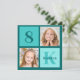 Convites Colagem de Fotos Azul Turquesa Chic para Festa de
