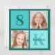 Convite de aniversário azul turquesa chic com 2 fotos para uma garota moderna. Celebre o aniversário do seu filho com duas belas fotografias deles nesta convite com fotos personalizadas com quadrados azul turquesa. Adicione o nome e a idade do seu filho.