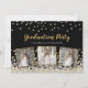 Design de convite de festa de formatura personalizado elegante com ouro e confete prateado sobre fundo preto, tipografia moderna com as palavras "Festa de formatura" (em ouro), o nome do formando (em prata) e três de suas fotos favoritas emolduradas em folha de ouro metálica. Personalize-o com os detalhes do seu partido no verso do convite.