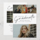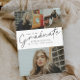 Este convite de formatura moderno e elegante apresenta formando em letra cursiva e nome personalizável, escola e colagem de três fotos na frente. O verso tem detalhes adicionais e uma quarta foto. Uma ótima maneira de mostrar seu formando.