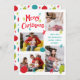 Mande alegria de férias para todos que estão próximos e queridos com estes cartões de Natal de colagem de fotos divertidas. Eles apresentam a mensagem Feliz Natal no meu divertido design com a letra retrógrada, juntamente com ilustrações de ornamentos de natais vintages e formas estelares em vermelho festivo, verde limão e azul turquesa contra um fundo branco. Estas placas de tela plana estão prontas para serem personalizadas com sua própria mensagem de "amor" em azul-turquesa e quatro de suas fotos.