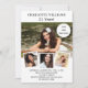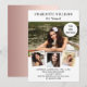 Crie sua própria colagem de fotos exclusiva. Use quatro, quatro das suas fotos favoritas. Personalize e adicione um nome e detalhes da parte. Fundo branco na frente, rosa dourado na parte de trás.