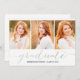 Cartão com fotos de colagem de script manuscrito convidando sua família e amigos para a festa de formatura de sua filha. Escrito branco de folha prateada falsa. Design de Elke Clarke. Visite nosso compro www.zazzle.com/monogramgallery* para mais designs e estilos. Adicione suas próprias fotos e texto.