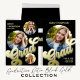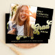 Este design apresenta um simples modelo de convite para fotos, na moda moderno, formando, perfeito para segundo grau ou faculdade, um retrato elegante preto e dourado, tipografia de tendência minimalista ousada, uma classe de formando de classe de 2024, 4 quatro modelo de layout de colagem de fotos múltiplas, um convite para o formando de graduação, cobertura de fotos transparente de vellum, letra de texto de letras de gradiente dourado, fotografia mais velho