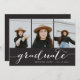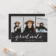 Este simples e chic cartão com fotos de lançamento de 3 fotos com graduação apresenta uma colagem com a inscrição de scripts brancos que destaca o formando. Adicione detalhes adicionais à parte traseira para criar um convite de festas. Selecione uma forma recortada, um papel texturizado ou um papel ultra grosso para um convite especial extra.